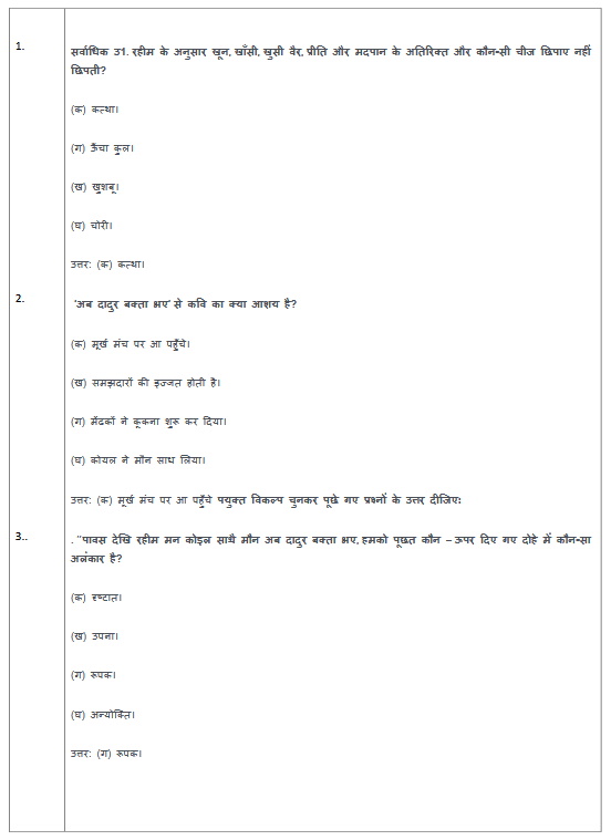 NIOS Class 10 Hindi Chapter 2-दोहे